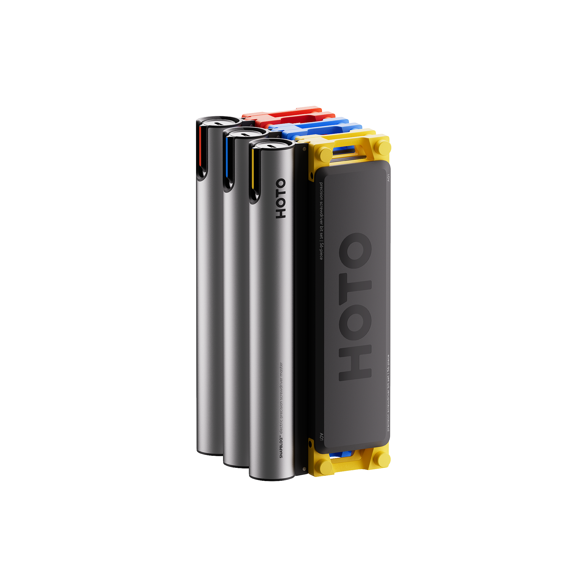La caratteristica più evidente della gamma Hoto SnapBloq è il suo design distintivo. Lontano dalle forme grezze e industriali a cui siamo abituati, questi utensili vantano linee pulite, forme compatte e un'estetica minimalista che ricorda più un gadget tecnologico di ultima generazione che un attrezzo da officina. Il kit completo, composto da un avvitatore (S-A01), un utensile rotante (R-A04) e un trapano a penna (D-A03), insieme a custodie eleganti e sei astucci magnetici per gli accessori, è un vero piacere per gli occhi. Ogni elemento è privo di viti o giunture a vista, conferendo un aspetto monolitico e sofisticato. Questa enfasi sullo stile mira non solo a rendere gli strumenti più piacevoli da usare, ma anche a ispirare gli utenti a cimentarsi in progetti di riparazione e bricolage, trasformando un compito spesso noioso in un'attività stimolante.